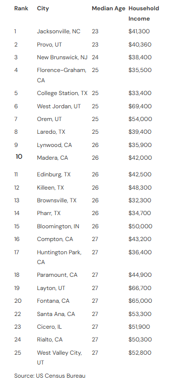 As this chart shows, cities with the youngest renters have the most potential renters. However, average household income and apartment property prices will determine whether they’re a good bet for the next 5 to ten years for investors. Texas, Utah, and California are the most youthful states.