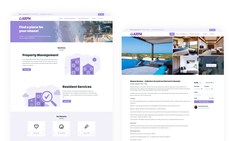 Get a modern, beautiful website for your Association or Property Management company to provide owners and residents a place to explore your community.