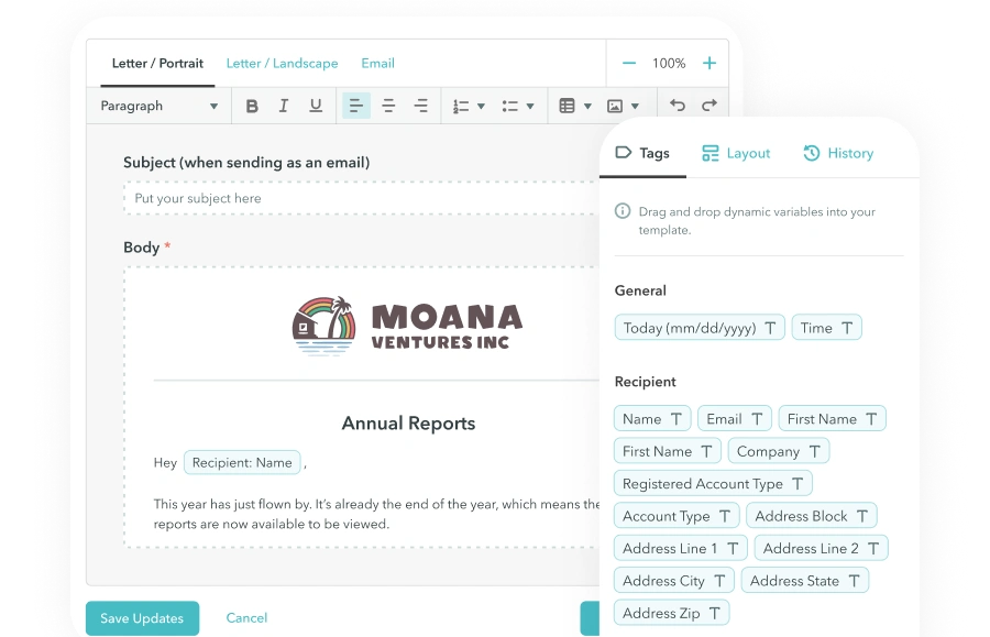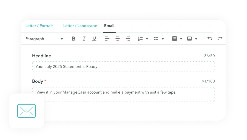 Create standardized communication templates for notices, letters, and announcements. Reuse, copy, or update templates while maintaining consistency across your community.