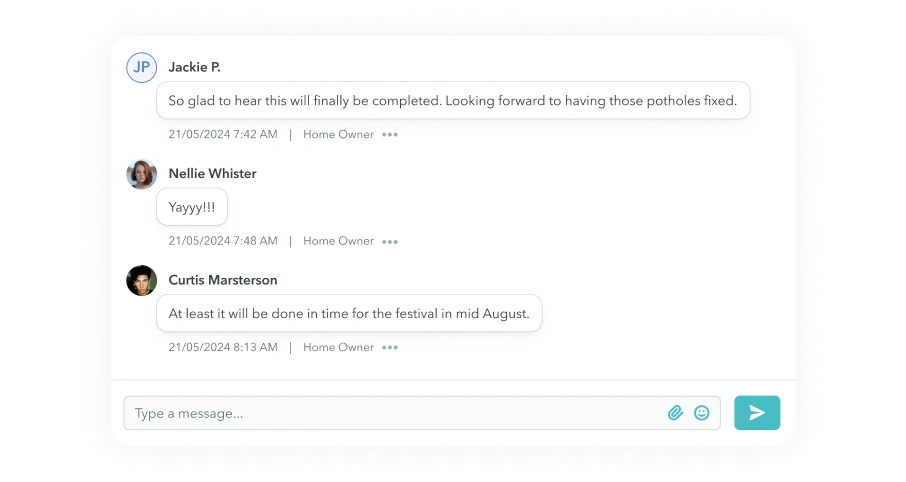 Messages are visible only to authorized users and stored with full history for transparency and reference.