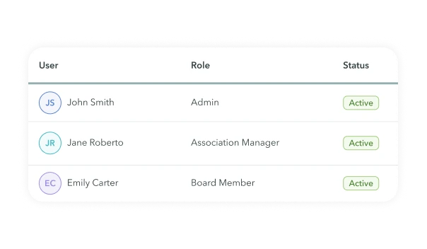 Control who can view or edit data across the platform. Assign permissions by role for board members, managers, staff, owners, and vendors.
